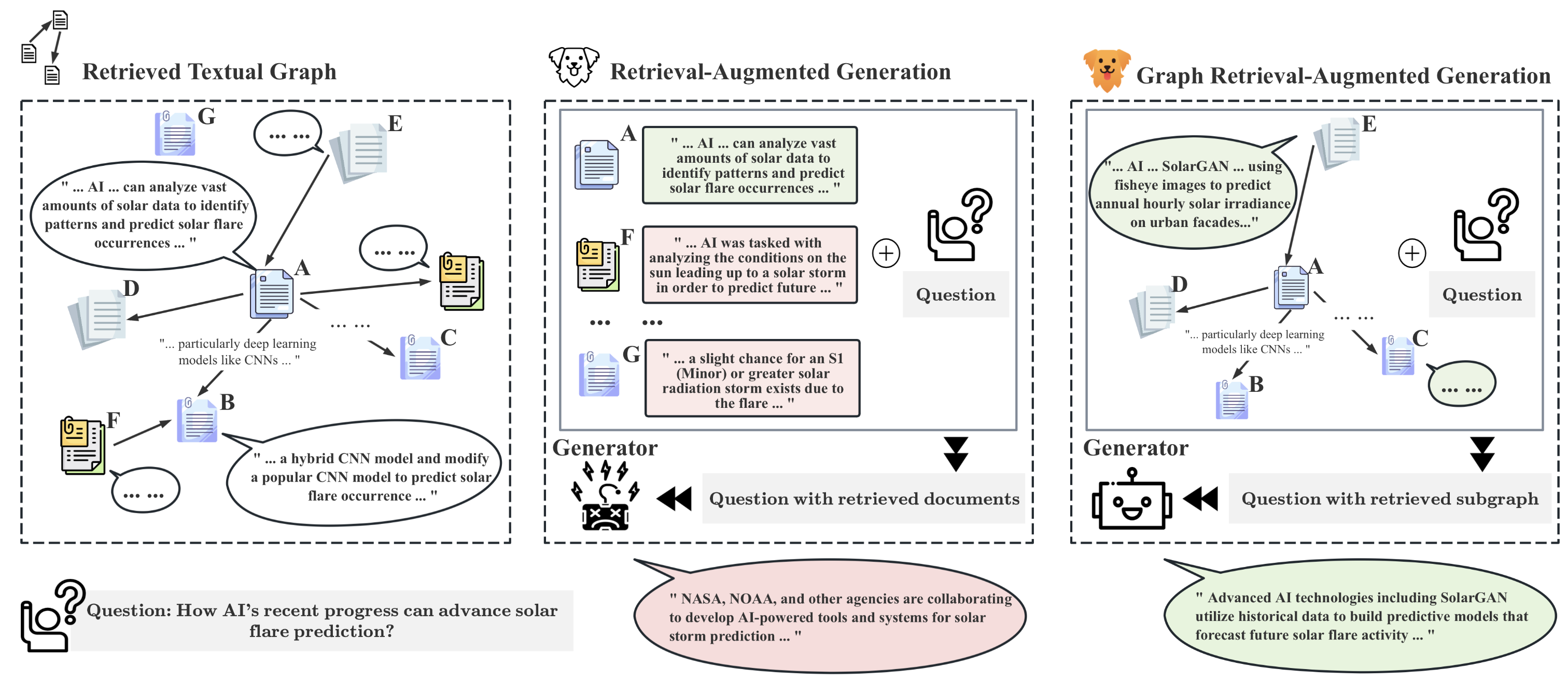 Naive Retrieval-Augmented Generation (RAG) methods are not aware of the topological information of the retrieved documents / knowledge graphs, and using only text information cannot solve graph question answering scenarios: